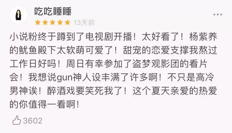 《亲爱的,热爱的》改编自墨宝非宝的小说《蜜汁炖鱿鱼》,这一IP本就有着很多的受众,虽然在初期的剧情设置让书粉有些意外,但随着剧情推动,“甜宠+电竞”这一组合让书粉愈发感到“真香”。