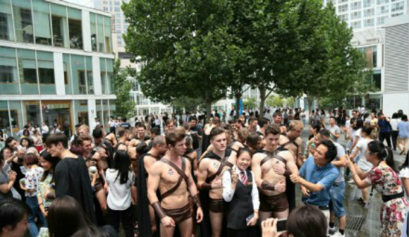 周三小周末黄昏傍晚时分,近百名装扮成斯巴达三百勇士的外国肌肉男照片点燃了微博和微信朋友圈。根据网友上传的照片显示,这些让女人扭头扭到颈部落枕的勇士们在晚高峰期间采用乘坐公共交通地下铁的方式先后出现在了国贸——建外SOHO——西大望路——望京SOHO——三里屯周边。