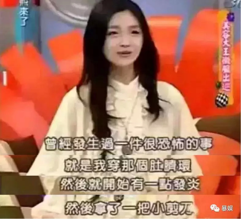因为爱臭美跟风穿肚脐环而导致肚子上的肉腐烂,但为了不耽误录节目,随手拿剪刀将腐烂的肉剪掉,再若无其事的塞回去。