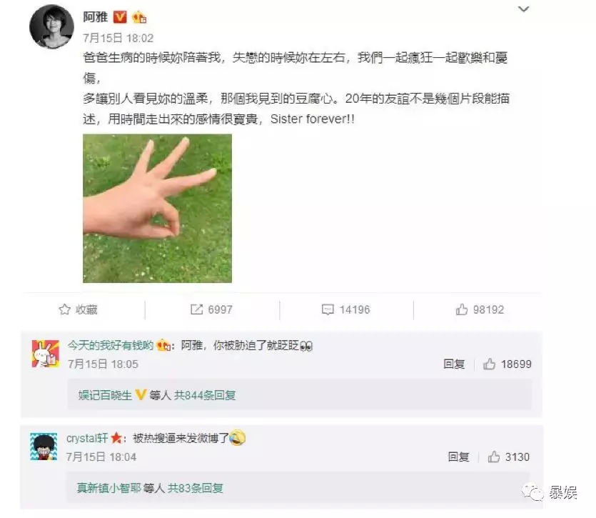 阿雅曾在节目中不止一次表示,说“S姐妹是她的贵人”。