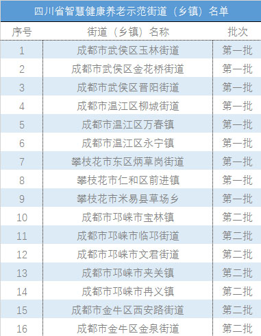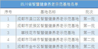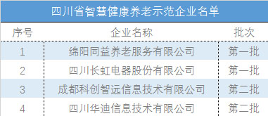 目前已公布的两批智慧健康养老应用试点示范名单中,四川省共有4家企业、5家基地以及16个街道入选。