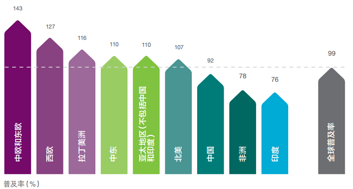 2015年第一季度,全球增加的用户有四分之三来自非洲和亚洲。第一季度,全球移动用户普及率达到了99%,新增用户1.08亿。在净增用户数方面,印度排名第一(2600万),其次是中国(800万),后面依次为缅甸(500万)、印度尼西亚(400万)和日本(400万)。