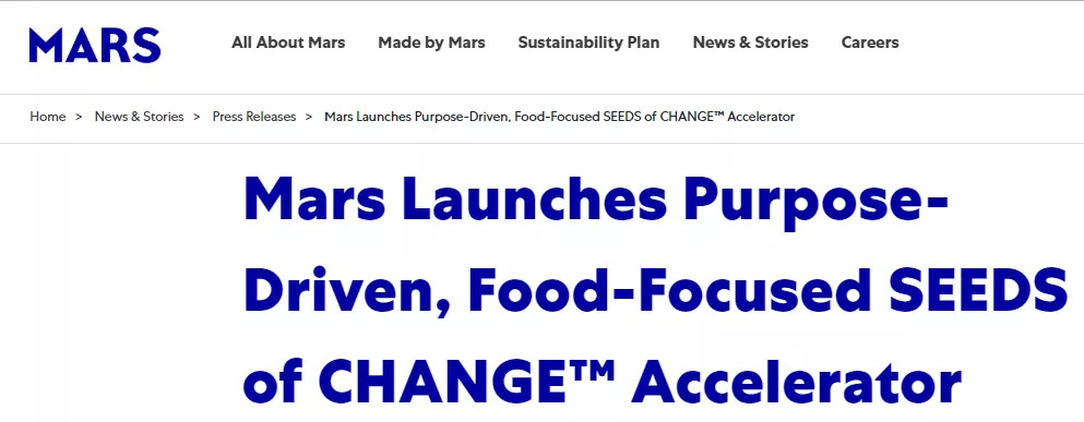 在今年3月,玛氏宣布推出名为“SEEDS of CHANGE (变革之源)”的加速器项目,旨在扶持食品初创企业的增长和未来发展,但开展范围并不包括中国。