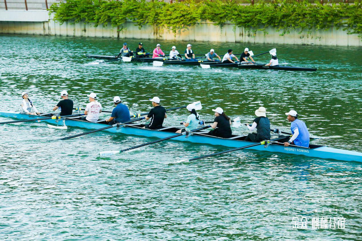 揭幕仪式完毕后,各位嘉宾共同前往大沙河进行赛艇体验,感受赛艇运动的魅力。