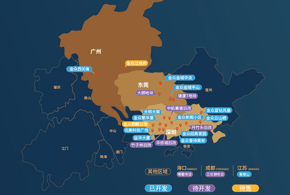 金众地产成立于1988年,是深圳建工控股旗下的综合性房地产开发企业集团。以精工美学为内涵,是金众地产产品研发、打造的原则与标准。金众地产始终秉承31年不断更新产品体系,从“水岸精筑系”、“山园经典系”、到“精工悦系”以及目前集团最高级产品系“TOP级公馆系”, 公馆系作为金众地产首个高端产品系,代表金众31年开发集大成的产品。金众地产不断在高端住宅领域持续开拓,为深圳带来更顶级的人居体验和更好的生活方式。