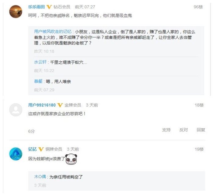 而今,魅族三剑客一一离开,公司的家族化管理再次被搬上台面,在魅族社区里,不少人把炮火对准了黄家人。