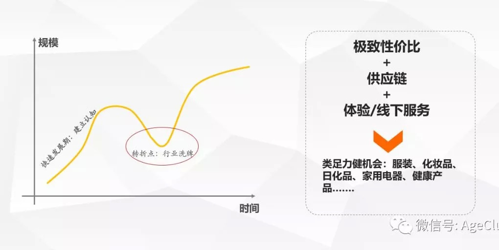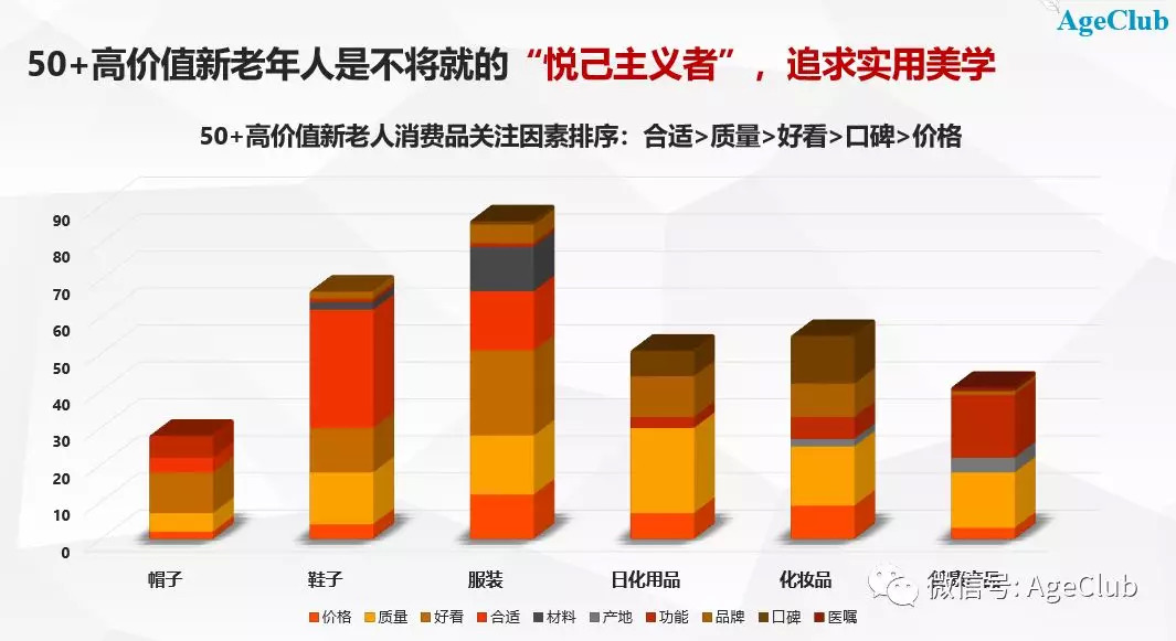 老年消费品市场的制胜核心是极致性价比、供应链和体验/线下服务,随着中老年人的需求升级,服装、化妆品、日化品、家用电器、健康产品等品类,都会出现类似老年鞋开创全新品类的市场机会。