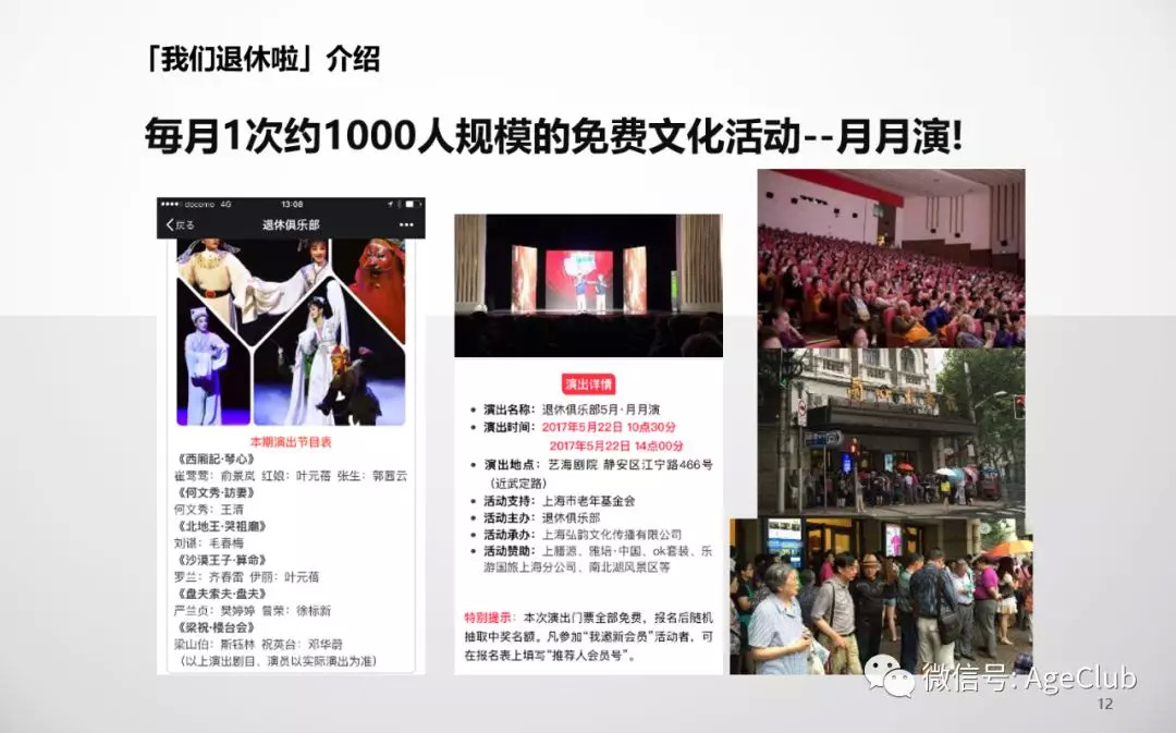 上海日欣文化传媒副总经理符微,负责运营《退休俱乐部》、《我们退休啦》等IP内容为核心的会员制老年特色生活服务平台,在上海的中老年群体中影响广泛。退休俱乐部的核心竞争力是打造三个差异化: