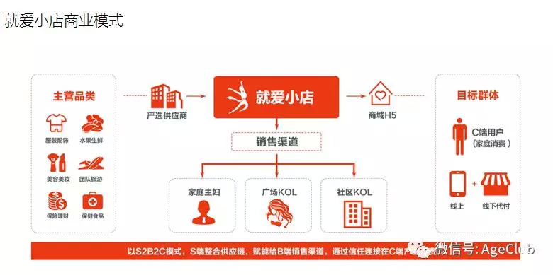 就爱广场舞最开始尝试的是直播模式,但电商转化率很低,而拼团模式很难和拼多多竞争,所以最终选择了分销模式当时开发了一款独立APP “就爱小店”,销售渠道主要是广场舞KOL,先覆盖每个城市广场舞协会的会长,这些会长再覆盖到每个广场的广场舞领队,实现对整个广场舞人群的覆盖。
