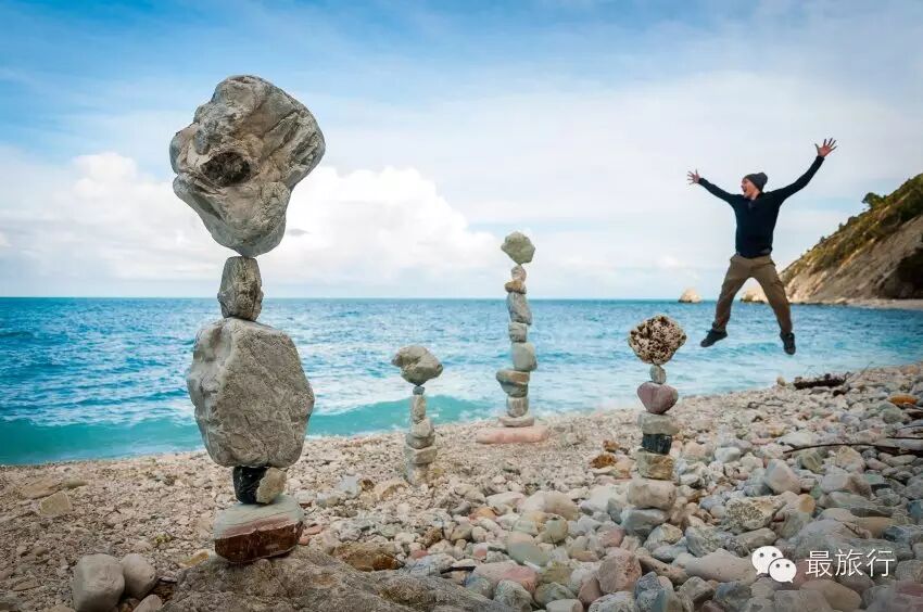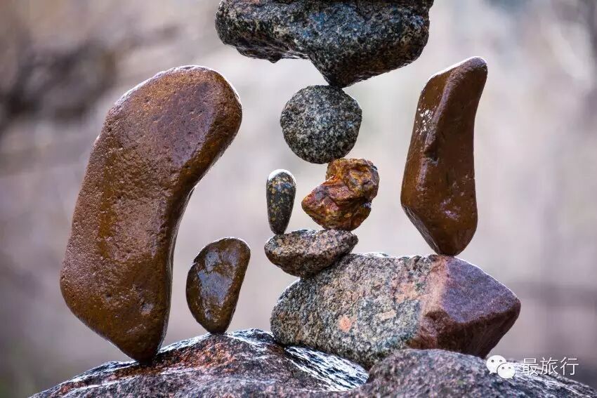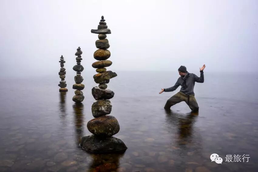 如今,环游世界叠石头已经变成了他的全职工作,那些普通的石头,一块接着一块,以我们意想不到的姿势,垒出了新的高度和境界。就像一个魔法,从他家的后院开始,散落到世界各地。