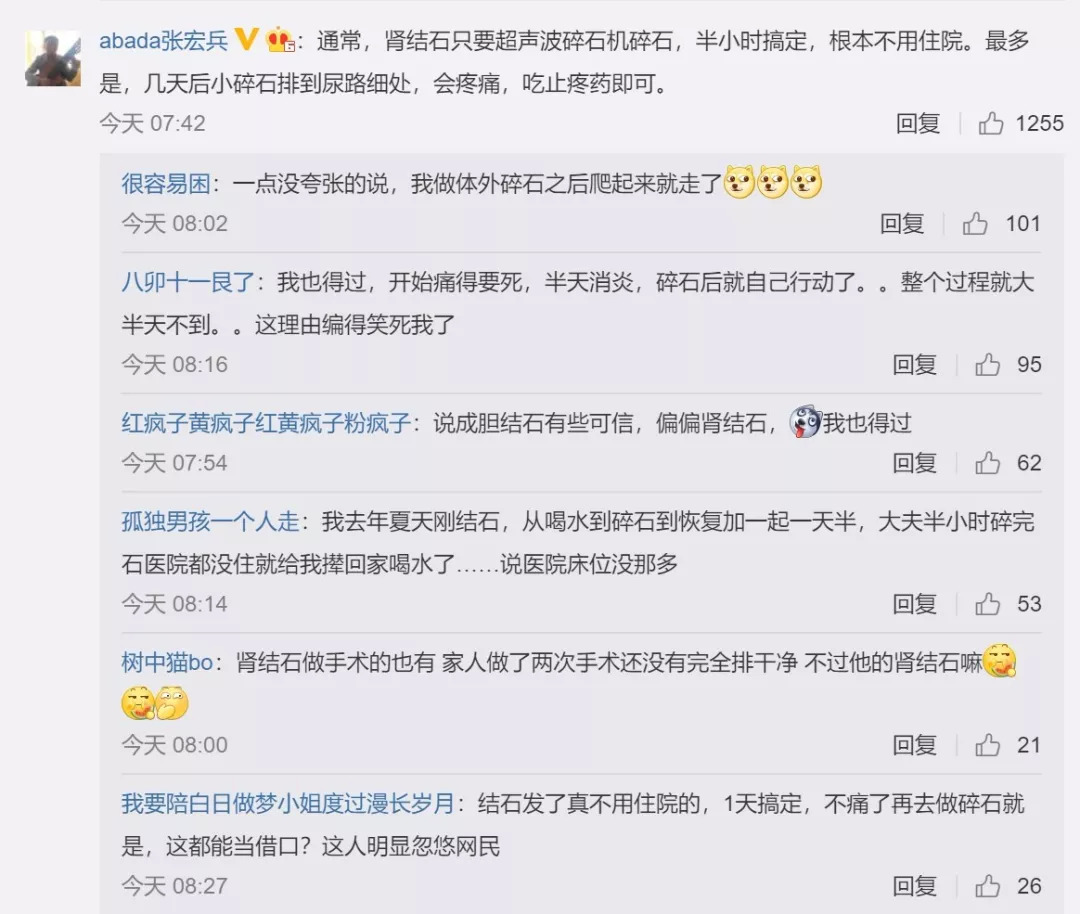 有趣的是,舆论并没有在这个回应时间上逗留太久,反而都对肾结石这个病产生了浓浓的好奇。