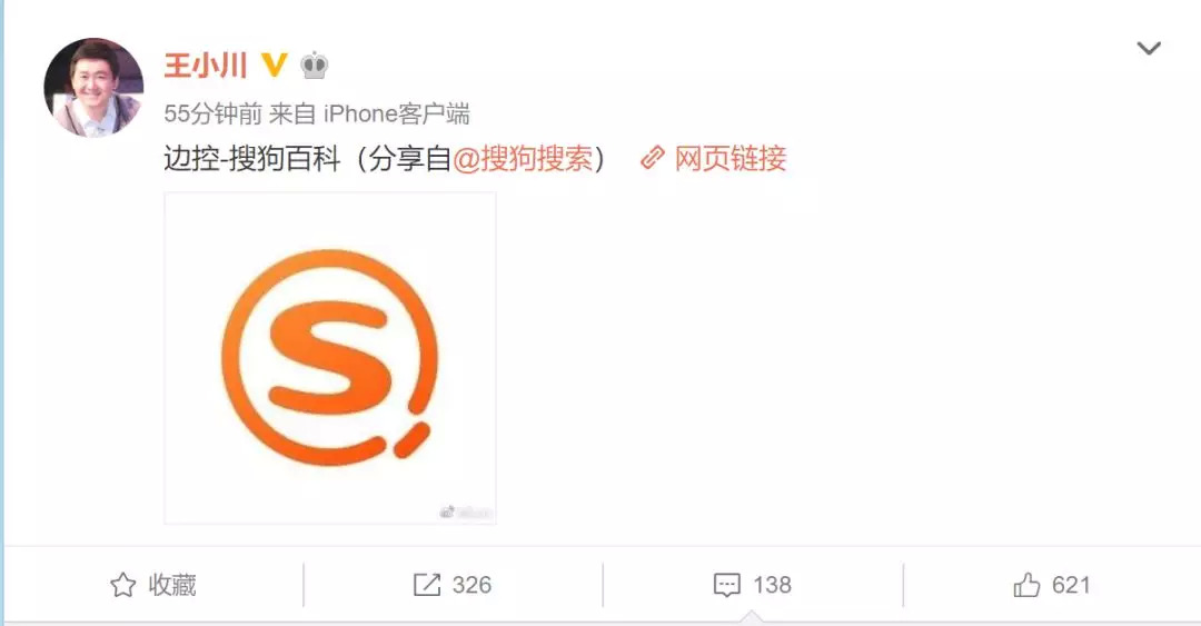财新的报道发布半小时后,王小川在微博分享了“边控”一词的搜狗百科。