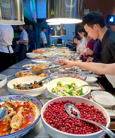现炒快餐让顾客自由选择,荤素均一称重计费,几十种菜品每样夹一点,一不小心就会导致客单价过高,从而丧失性价比。
