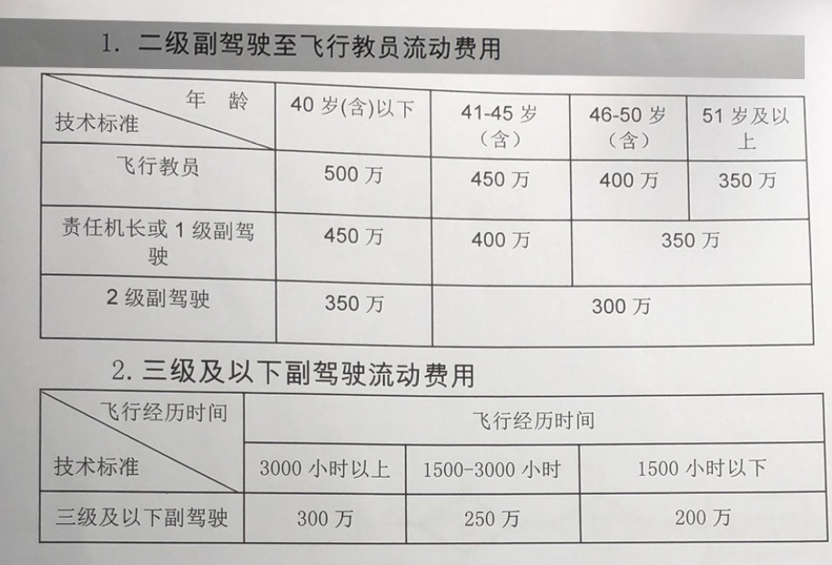 其他航空公司的赔偿要求也基本在这一区间。界面新闻了解到,目前天津航空A类飞行教员的流动费用是530万元,B、C类教员是550万元;而山东航空二级副驾驶至飞行教员的流动费用在300万-500万之间,三级以下副驾驶在200万-300万之间。