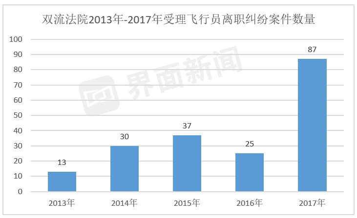 管辖成都双流国际机场的双流人民法院,在2018年曾发布过《飞行员离职纠纷案件审判白皮书》(下称《白皮书》),显示飞行员流动趋势明显,离职纠纷增多,但案件的调解撤案率低,以判决结案为主,且上诉率高。