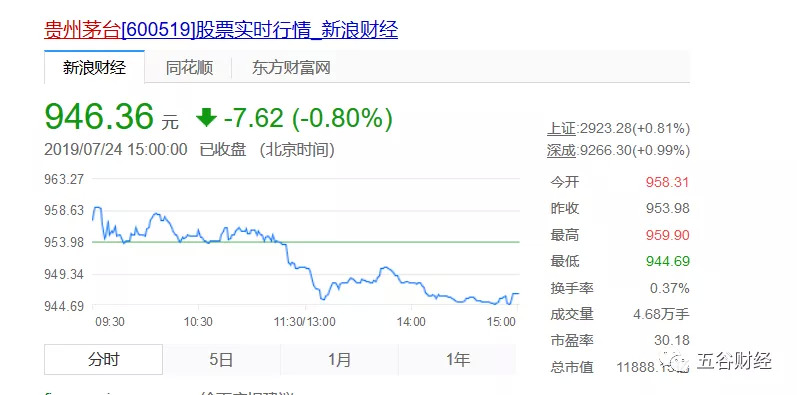 截止7月24日收盘,贵州茅台的股价为946.36元/股,跌幅在0.8%左右,这意味着贵州茅台仍有一定的上涨空间。