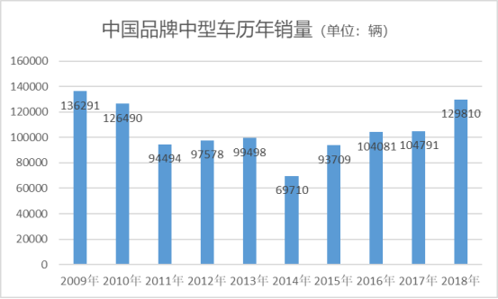 从近十年来自主中型车的发展历程来看,“黄金十年”造就了自主SUV的风靡,却让自主中型车的境况愈发低迷,2018年自主中型车的销量甚至不如十年前。