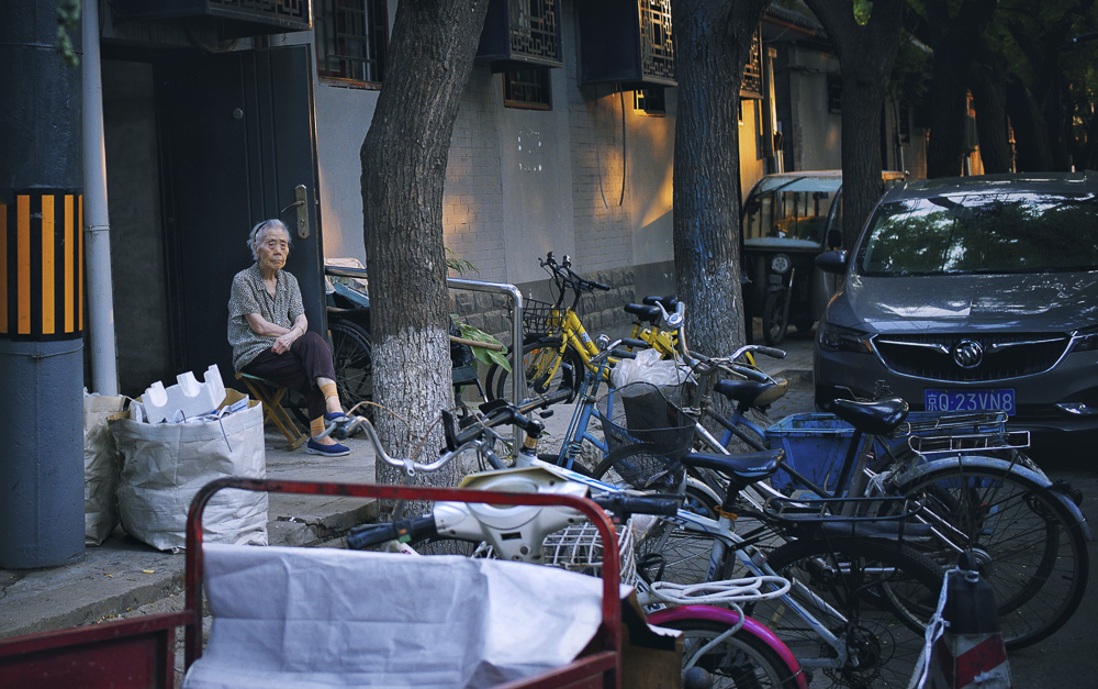 如果说东直门环岛是车占据了几乎全部道路,民安街和东直门北中街就是让车与人有了些许区隔,而一进胡同,市声贴身而来。黄的蓝的外卖电动车急促地嘀嘀响着,旧三轮快速驶过坑洼的胡同发出的噼里啪啦零部件快散架的声音,停在路边的电瓶车被碰到了,尖锐地警报。有人在往路边的小卖部卸啤酒,玻璃瓶清脆而又令人心安地撞击。