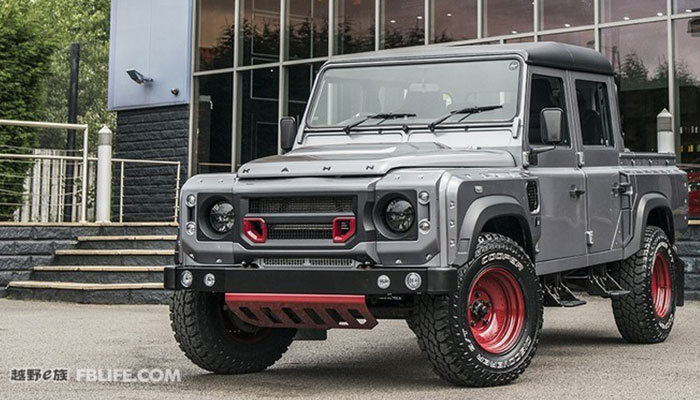 整车以黑、灰两色为主,红色的复古式轮圈和发动机底盘护板起到了画龙点睛的作用。X-Lander的进气隔栅和保险杠套件,Kahn Design提供的车身宽体改装也令卫士看上去更加壮硕。