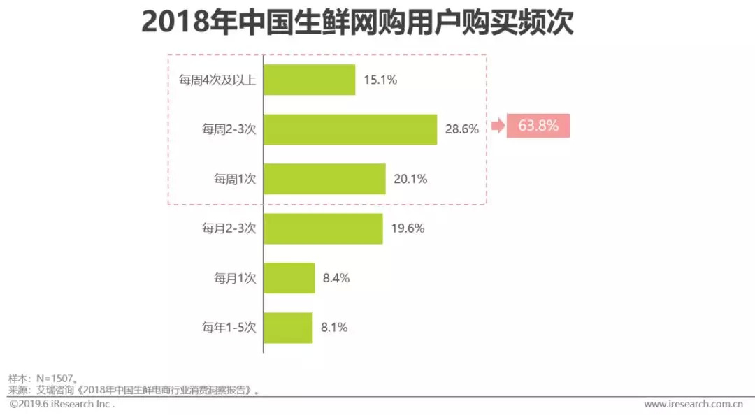 网购生鲜的习惯已经养成,超6成用户网购生鲜每周1次以上