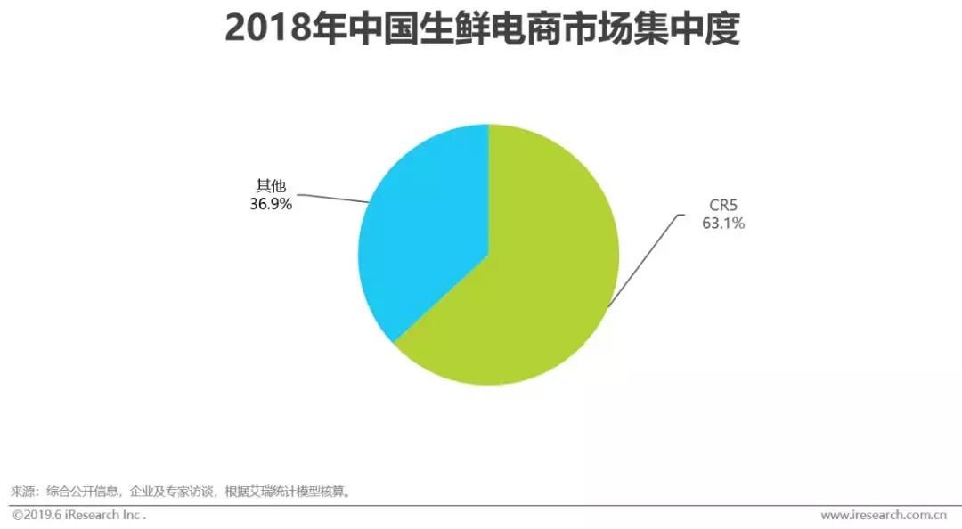 2018年中国生鲜电商CR5占比63.1%,集中度较高,头部效应明显。