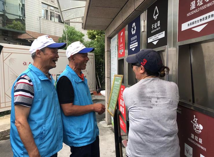 7月5日,所有的动迁居民都搬离了多稼居民区,但居民区已经离不开黄建明这样的老同志了,像黄建明一样定期回“老家”做志愿者的外迁居民还有五位。他们都是六七十岁的退休老人,排好班轮流从全城各处赶回“老家”做垃圾分类志愿者。居民们也被志愿者的热情所感染,把垃圾分类化作日常生活的一部分。