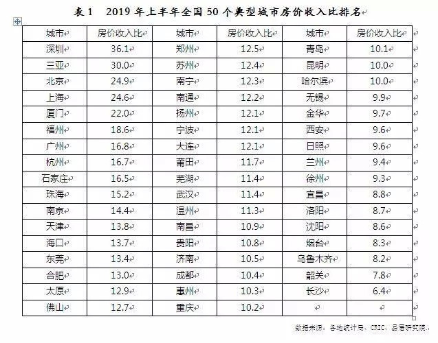 上半年各城市的买房难度有何变化?易居房地产研究院7月23日发布了《2019年上半年全国50城房价收入比报告》。
