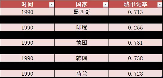 1990年,墨西哥城市化率突破70%,甩开发展中国家几条街,和德法意等老牌发达国家不相上下。