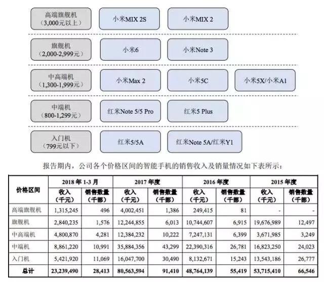 根据招股书披露,红米系列在2015年、2016年、2017年和2018年一季度的销量分别是5080万台、4202.4万台、7378.9万台和2206万台,在小米手机总销量中的占比也一直处于高位,分别是76.3%、75.9%、80.7%和77.6%。