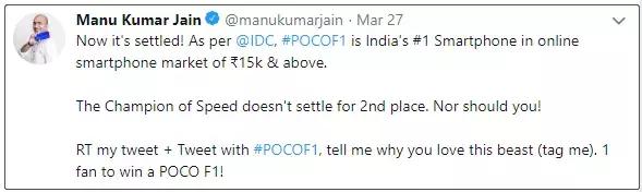 小米印度公司董事总经理马努·贾恩(Manu Jain)还今年3月还发布了庆祝推文,称“现在确定了,速度冠军并不满足于第二名”。
