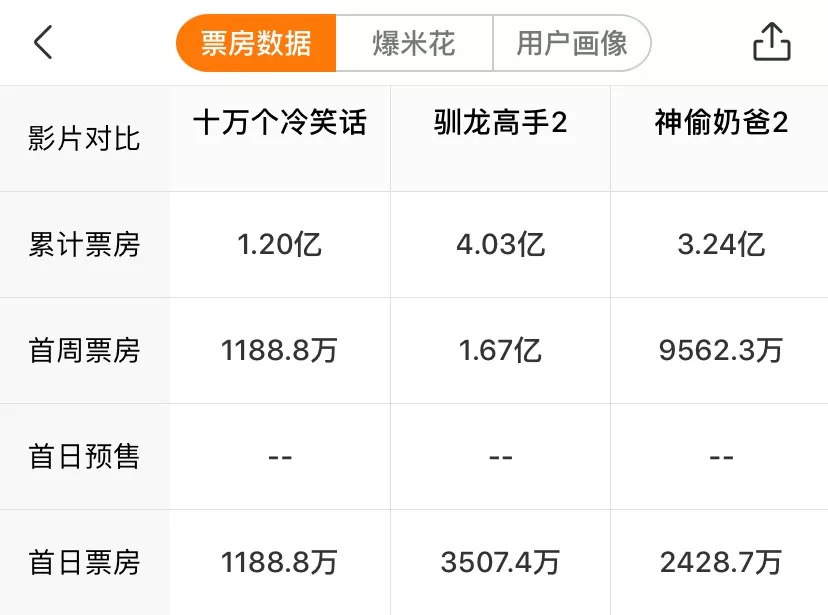 《十万个冷笑话》票房较当年进口动画片的票房仍有差距(数据来源:灯塔专业版)