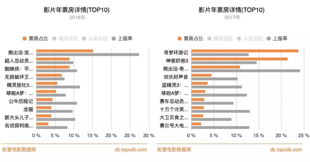 2017、2018年动画电影TOP10中的国产动画电影以低幼向为主