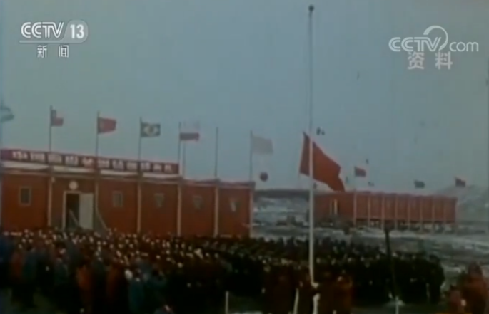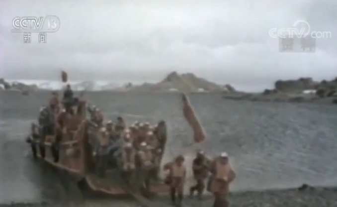 中国南极长城站首任站长 中国极地研究中心原党委书记 颜其德:我记得到了下午大概6点多钟的时候,突然海浪逐渐增大。当时记不得是谁了,大叫一声队友们不好了,码头给冲出一个大窟窿了,赶快抢救码头材料吧。大家一起扑上去,扑上去以后,真是手挽手、用自己人肉铸成的长城挡住海浪。