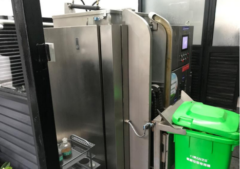 上海静安区的同乐坊文化创意园内,艺迈的一台智能餐厨垃圾就地处理设备,正在处理湿垃圾。在4-5小时内一次性投放的150公斤湿垃圾,可被它消化分解为用于制造生物柴油的废油和可用作有机肥料的残渣,垃圾减量率在90%左右。