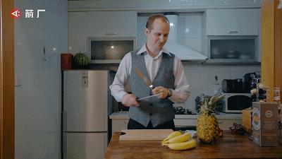 来自法国的David追随妻子黄卓隽来到上海生活,今天他专门为他们的结婚五周年纪念日准备了大餐:一份独创的香蕉菠萝火焰熔岩派。