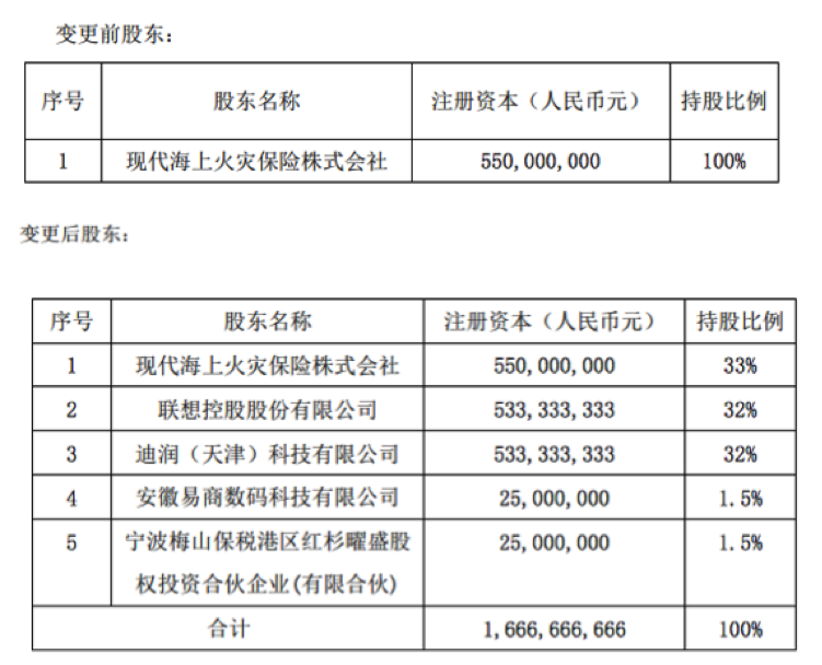 现代财险披露的拟增资和变更股东公告显示,拟将公司注册资本从目前的5.5亿元增加至16.67亿元,新增资本由4家新股东认购,上述拟变更注册资本事项待中国银保监会批准后生效。