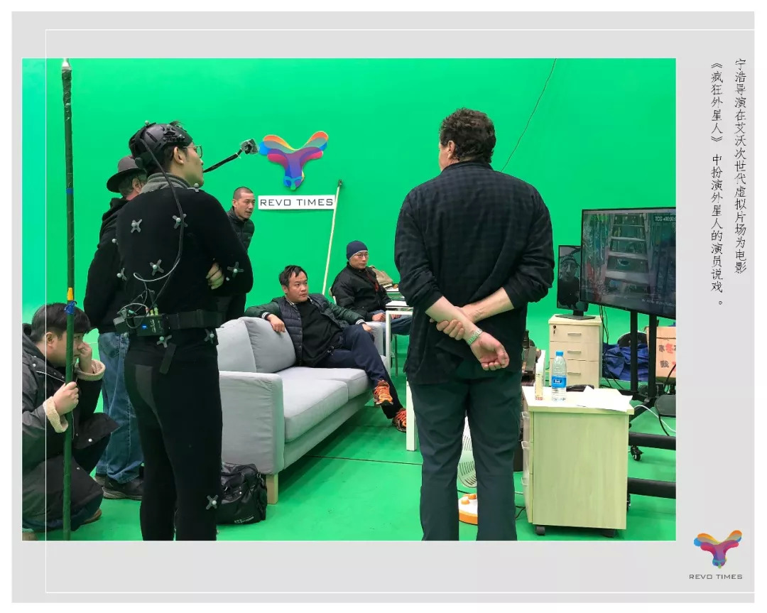 宁浩导演在虚拟摄制现场为外星人演员说戏