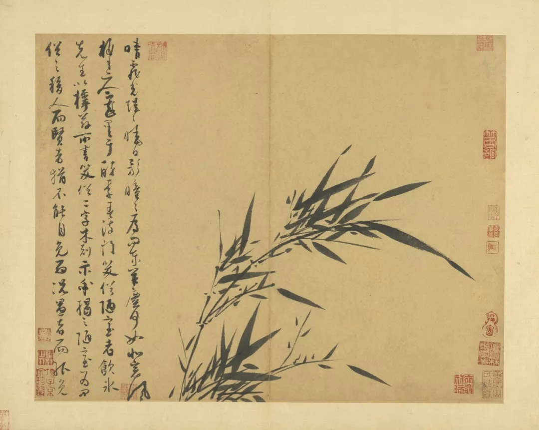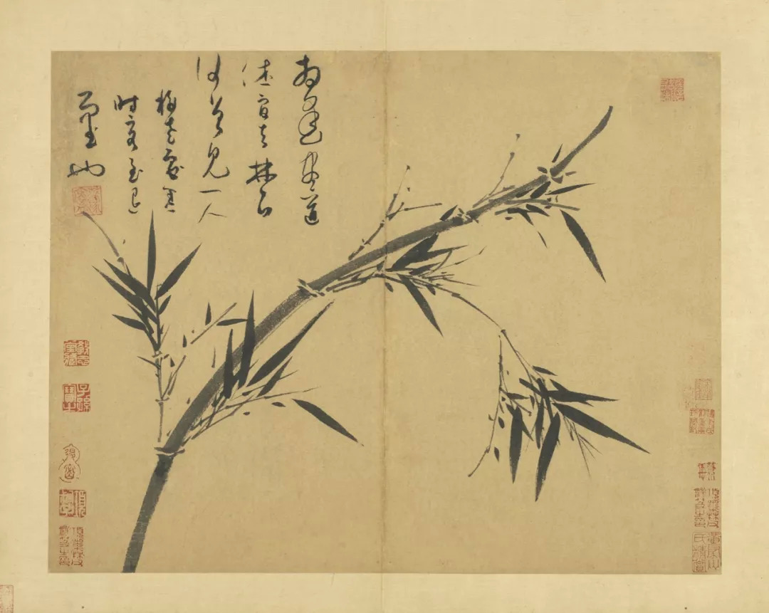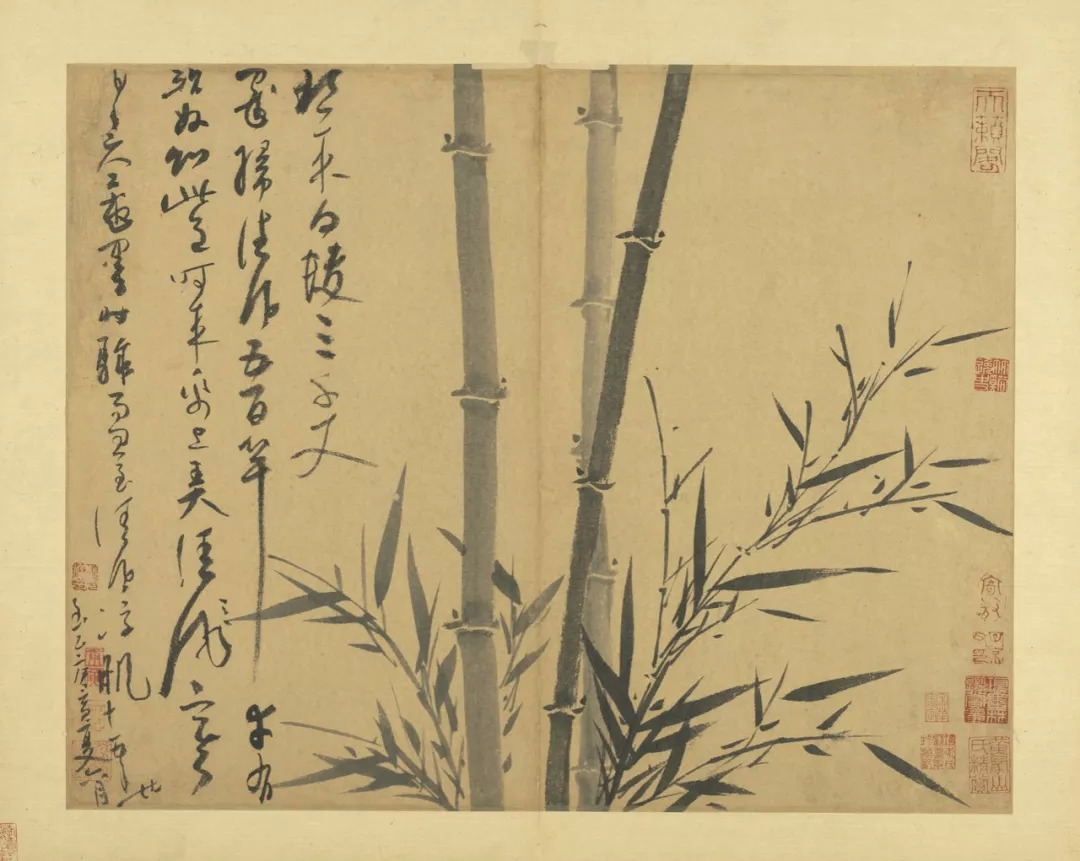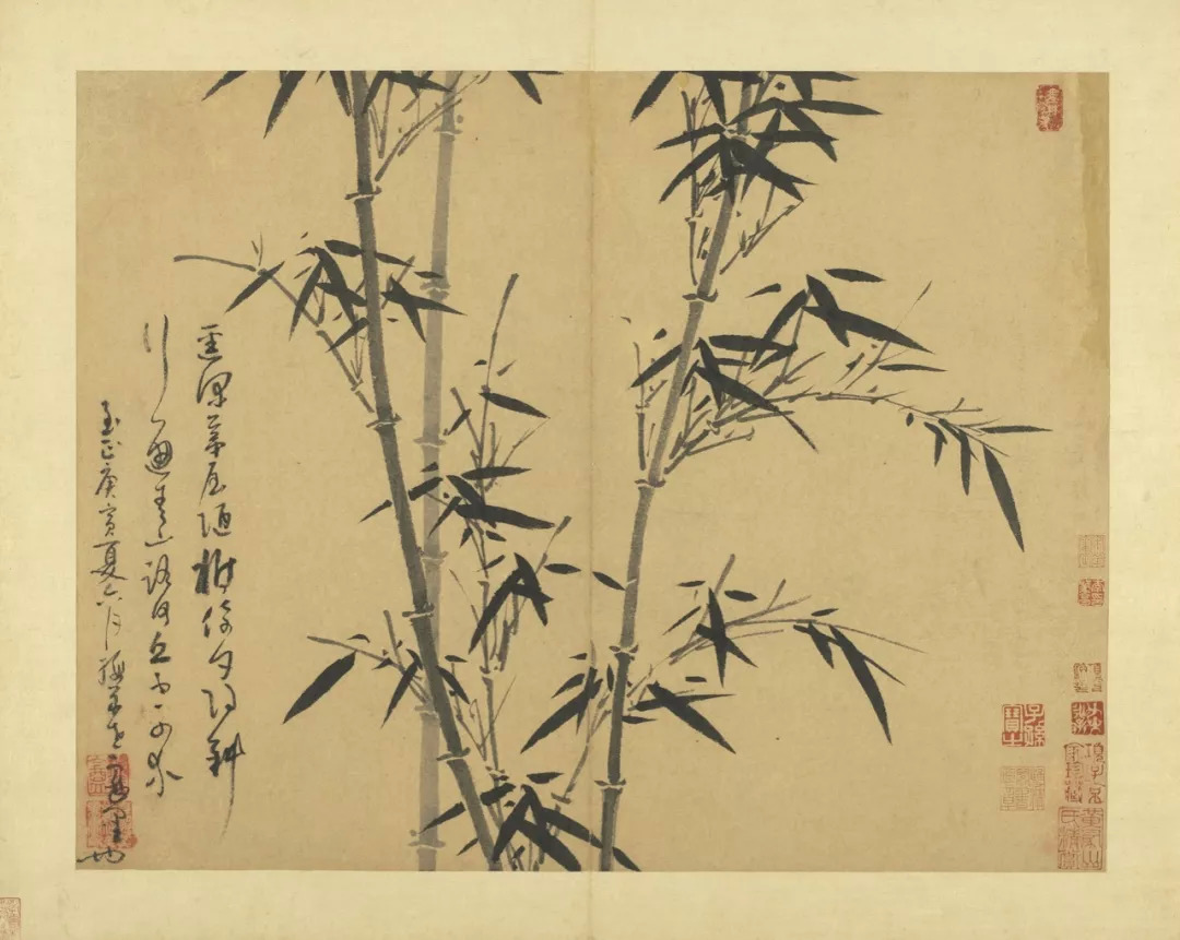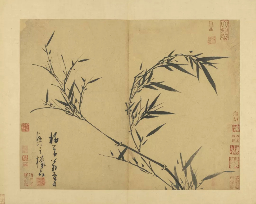 吴镇71岁时,将这套《墨竹谱》画给他的儿子佛奴,可以说,这本竹谱是吴镇毕生功力的体现。他曾说的墨竹之法:“疏不至冷,繁不至乱,翻向正背,转侧低昂,雨打风翻,各有法度”,体现了他对竹子的情有独钟,是倾注了自己的情感,寄托了自己的理想的。