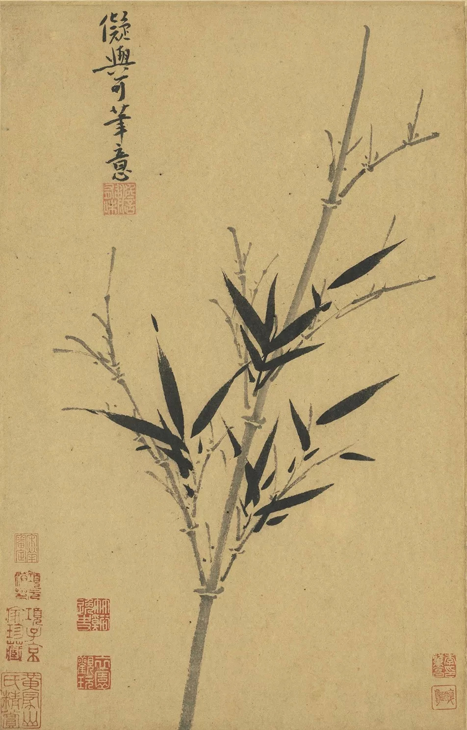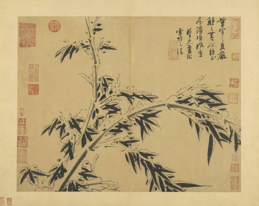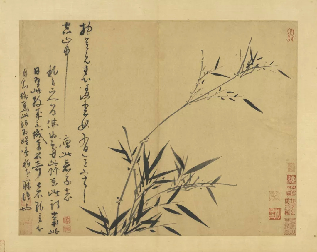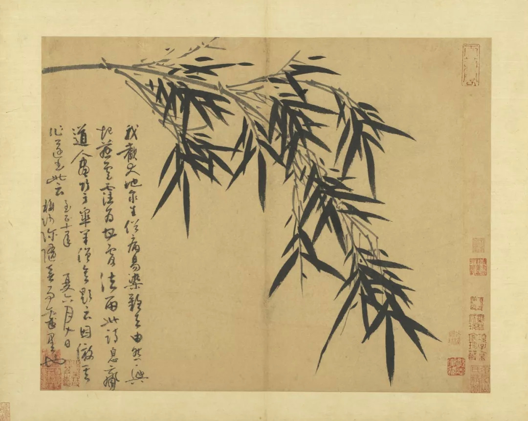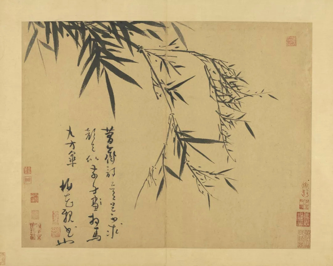 吴镇71岁时,将这套《墨竹谱》画给他的儿子佛奴,可以说,这本竹谱是吴镇毕生功力的体现。他曾说的墨竹之法:“疏不至冷,繁不至乱,翻向正背,转侧低昂,雨打风翻,各有法度”,体现了他对竹子的情有独钟,是倾注了自己的情感,寄托了自己的理想的。