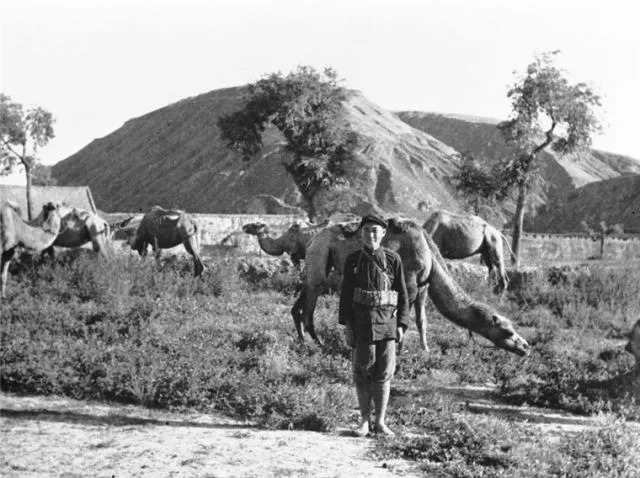 红军与红军的运输工具之一骆驼(资料照片)。新华社发(埃德加·斯诺摄)