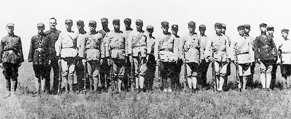 大渡河勇士与美国记者埃德加·斯诺的合影照,在飞夺泸定桥之前,红军17勇士在安顺场强渡大渡河,可惜的是飞夺泸定桥的22勇士未能留下影像。