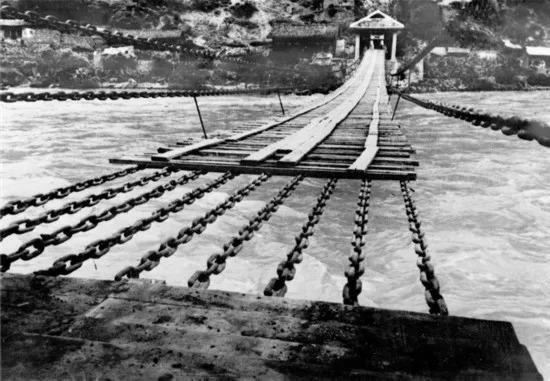 当他们坚定地踏上泸定桥西桥头时,摆在他们面前的路,是枪林弹雨中横跨在大渡河面上的十三根铁链。