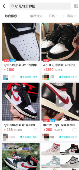 最关键的是,“莆田鞋”价格并不便宜,相比发行价不到1300元的“倒钩”AJ1,“莆田版”也已经高达近千元。这对于那些抽不到官方正版,却想拥有正品的用户而言,简直是另一种“福音”。