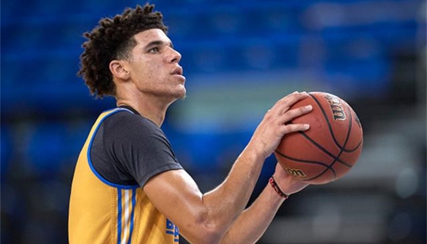 “洛杉矶湖人在首轮第2顺位选择来自UCLA的朗佐-鲍尔。”