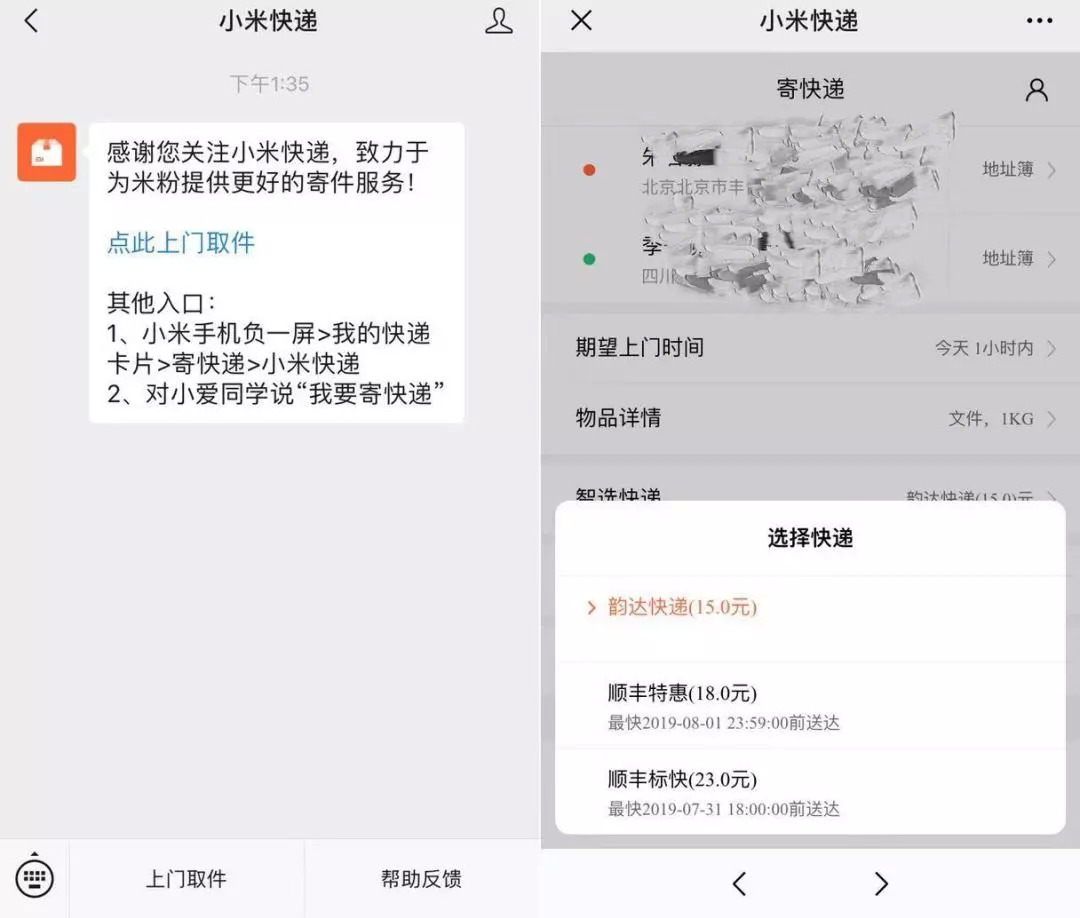 近日,《新商业情报NBT》发现小米已正式上线了快递服务。用户可以通过微信公众号“小米快递”使用小米提供的寄件服务。
