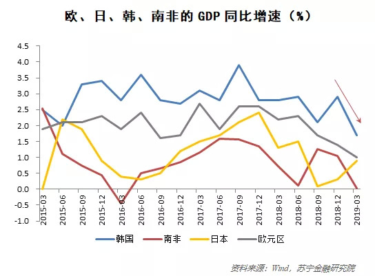 近几年,尤其是今年以来,欧元区等发达国家以及韩国、南非等相对新兴的市场中,经济增速明显下滑。仅有日本经济在安倍经济学的不断放水刺激下,短期回升。