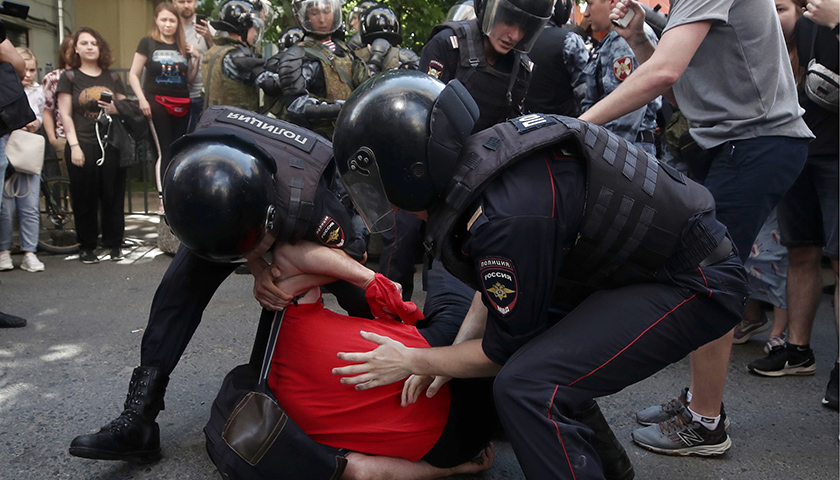 7月27日,莫斯科市中心爆发了近年来规模最大的一场非法示威活动,近3500名抗议者围挤在市政厅外,要求政府给予反对派及独立人士议会参选资格。过程中,抗议者与当地警方产生了肢体冲突,有近三分之一的人被警方拘捕。