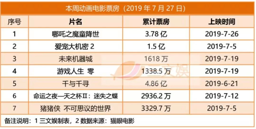 7月27日《哪吒》票房破3亿元,用时30小时21分;
