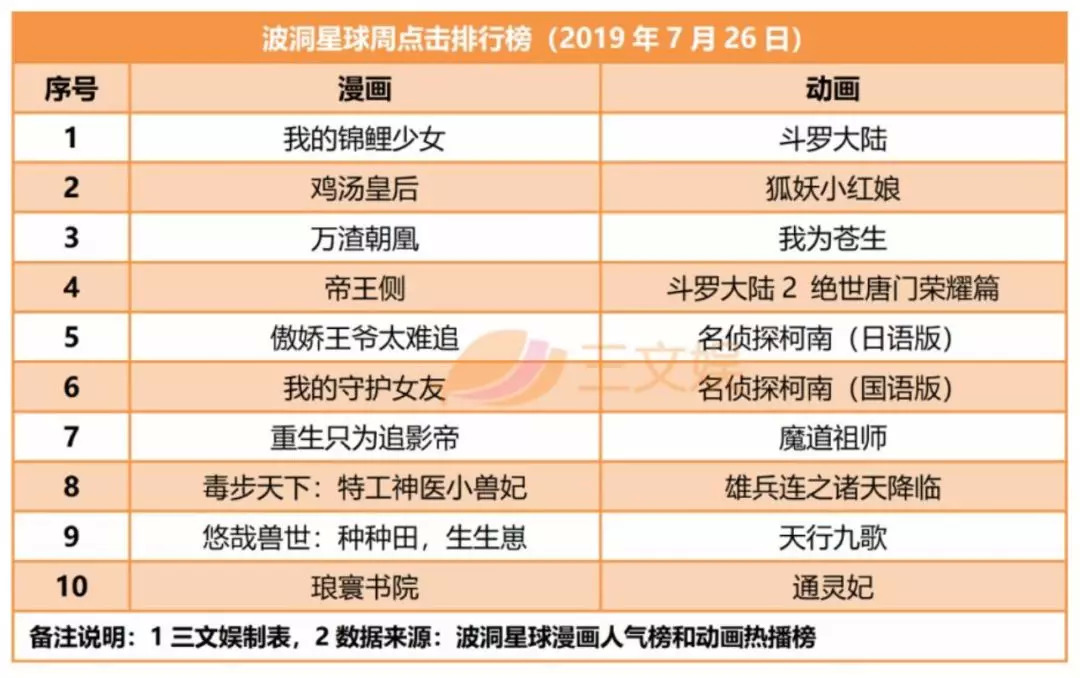 波洞星球漫画方面,截至7月26日,漫哆啦创作的恋爱漫画《我的锦鲤少女》依旧蝉联第一,上周人气值为2.6亿,榜单上的作品没有出现变化。