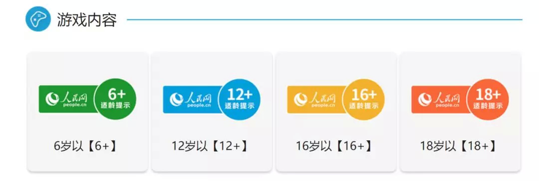 从“游戏适龄提示”的规则来看,其分级与国际的几个标准大不相同。在人民网的倡议中提到:“游戏适龄提示”标准建立在合法出版物的标准之上。
